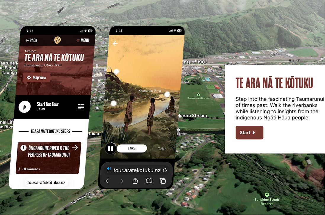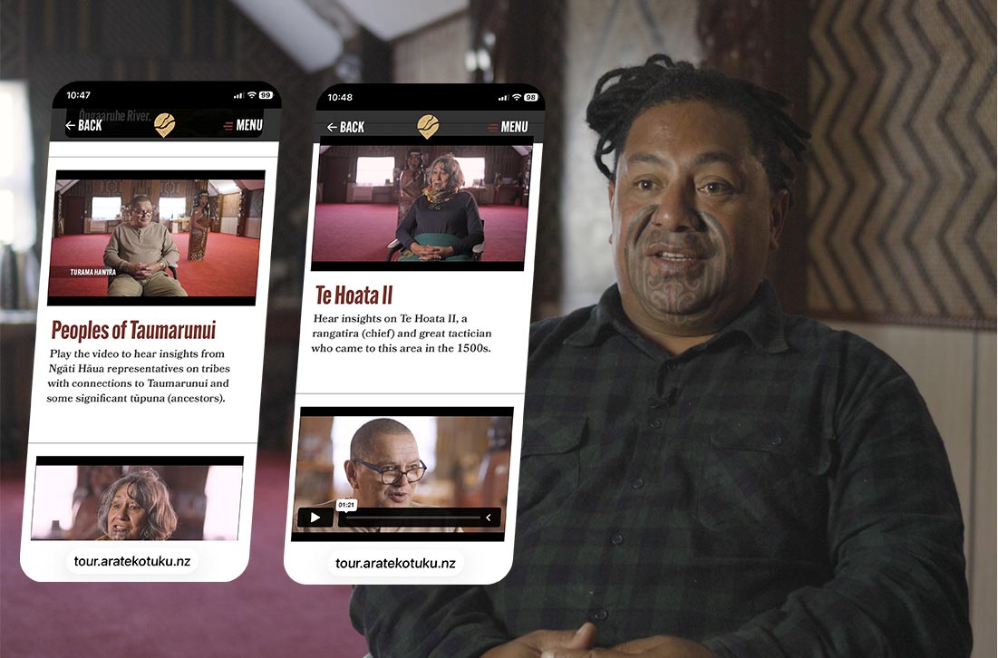 The mobile guide is also enhanced with edited oral history interviews with Ngāti Hāua, preserving and sharing treasured kōrero passed down through generations.