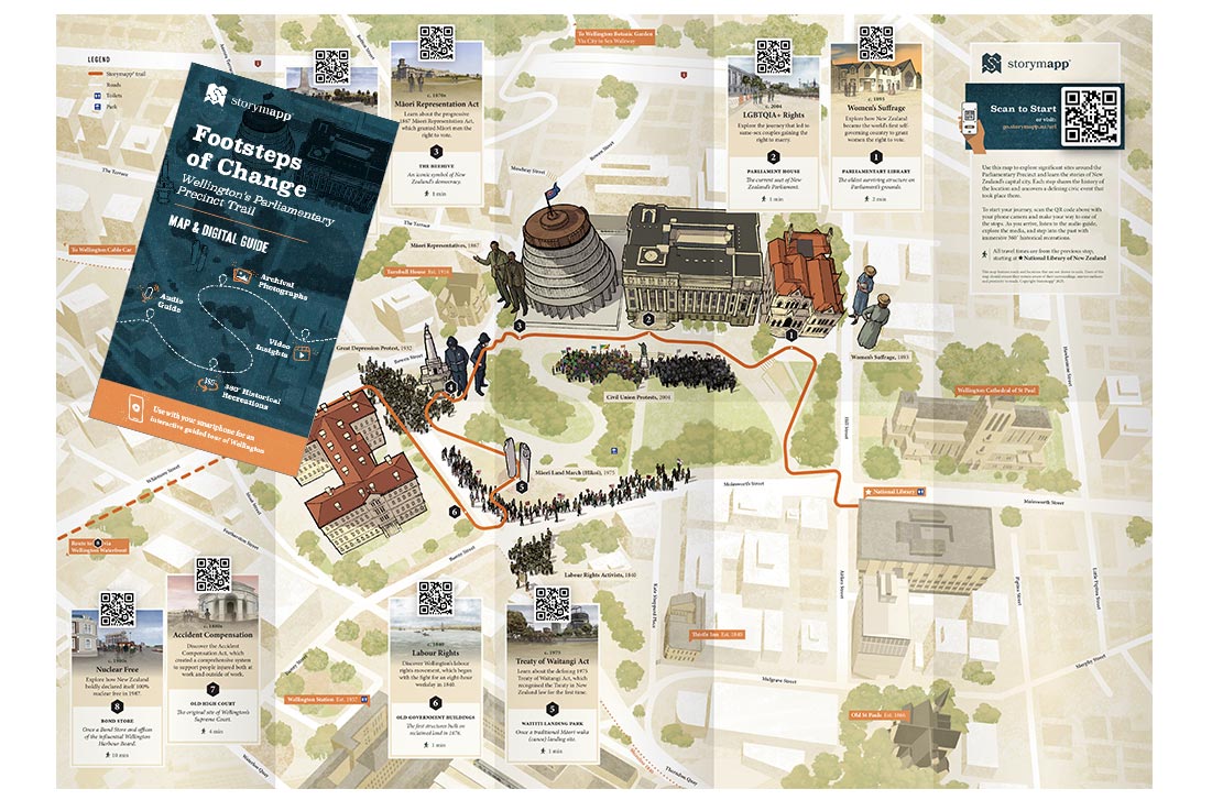Footsteps of Change is a self-guided tour that takes visitors through iconic landmarks whilst exploring founding civic moments that have defined New Zealand’s history.