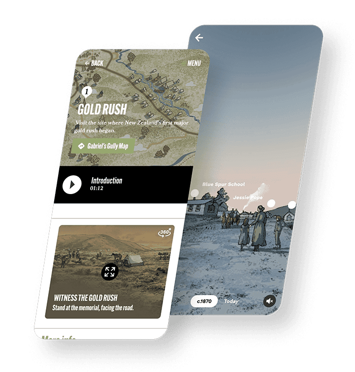 Based out of the Tuapeka Goldfields Museum and Visitor Centre, the Gabriel’s Gully Storymapp® System explores seven historic sites of New Zealand’s first gold rush.